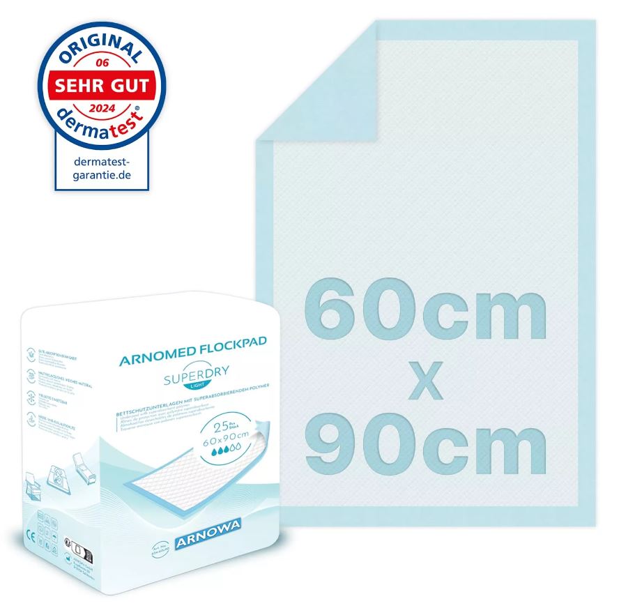 Geliefert in praktischen Beuteln zu je 25 Stück sind die ARNOMED Krankenunterlagen in 60x90cm Größe ideal für die häusliche Pflege, medizinische Einrichtungen, als Einweg Wickelunterlagen für Babys und Trainingspads für Hunde.