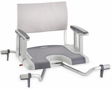 mit Hygieneausschnitt, Armlehnen und Rückenlehne. Sicherer und individuell anpassbarer Badewannen-Drehsitz.