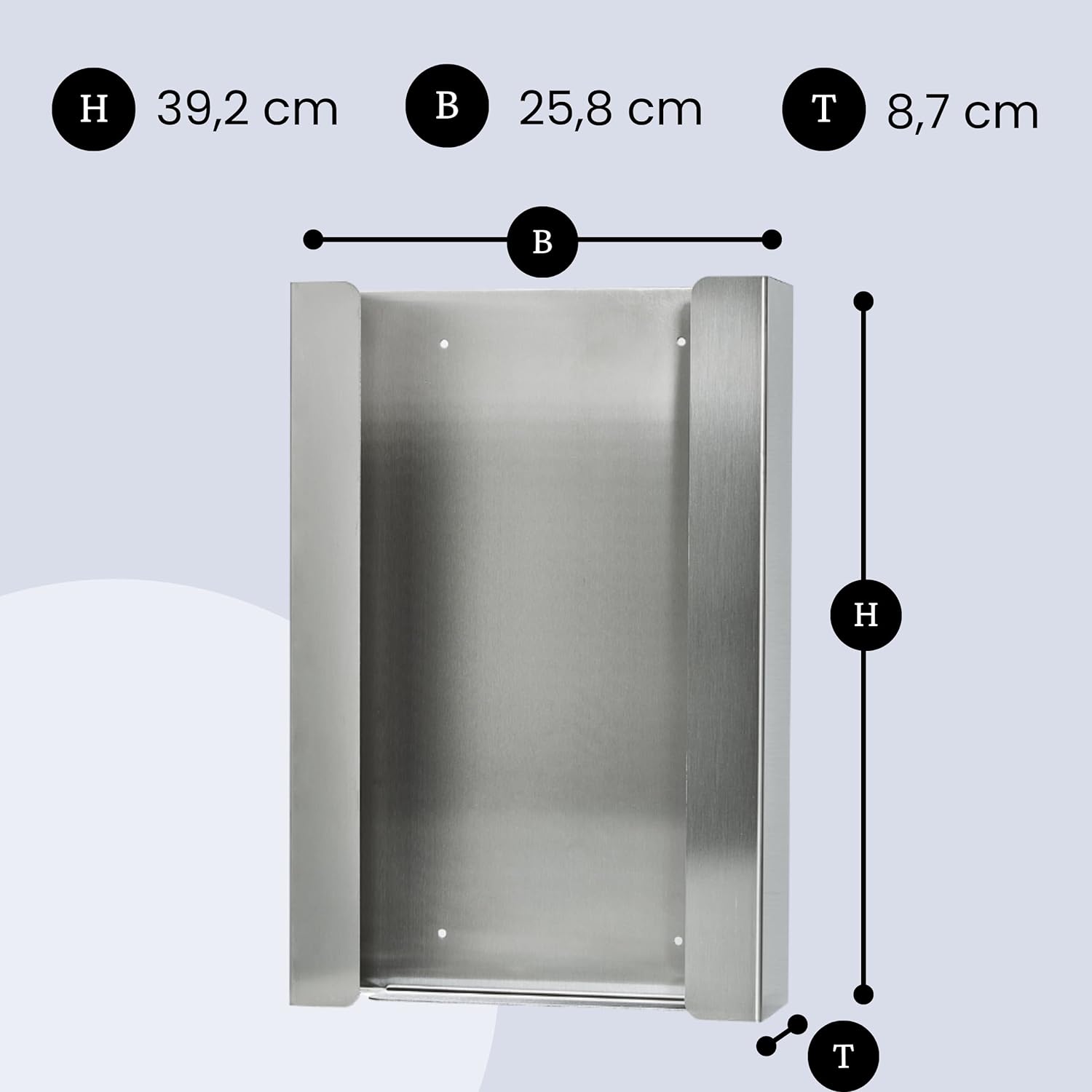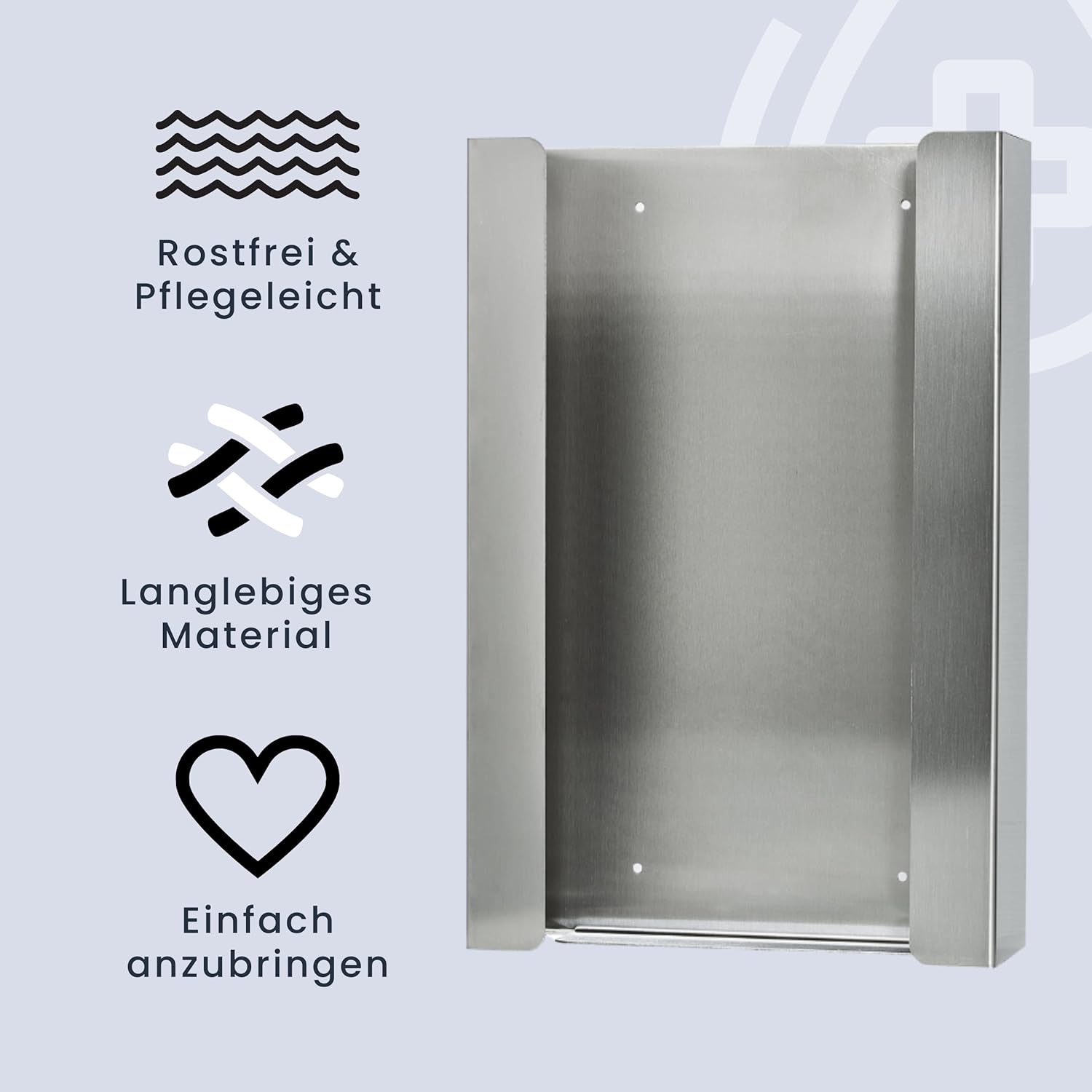 Der Edelstahl 3 FACH Handschuhhalter von INOGS (Maße: 25.8 x 39.2 x 8.7 cm (geringe Abweichungen möglich) gewährleistet, dass Einmalhandschuhe verschiedener Größen immer griffbereit sind.