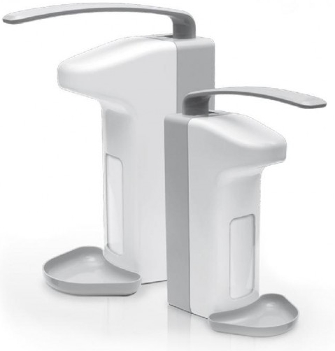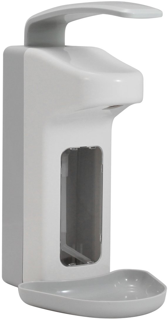 Produkteigenschaften: Armhebel-Wandspender mit Kunststoffgehäuse, langem Bedienungshebel, Sichtfenster und Auffangschale. Für 1.000 ml Eurospender-Flaschen. Produktdetails: • für 1000 ml Eurospender-Flaschen • Maße: 325 x 150 x 215 mm • Farbe: weiß
