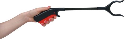 Greifzange aus Aluminium mit zusätzlichem Fingerhaken für mehr Stabilität und einem Kunststoffgriff mit Magnet. Die drehbare Klaue ermöglicht horizontale und vertikale Verwendung, Gewicht: 109 bzw. 125 g.