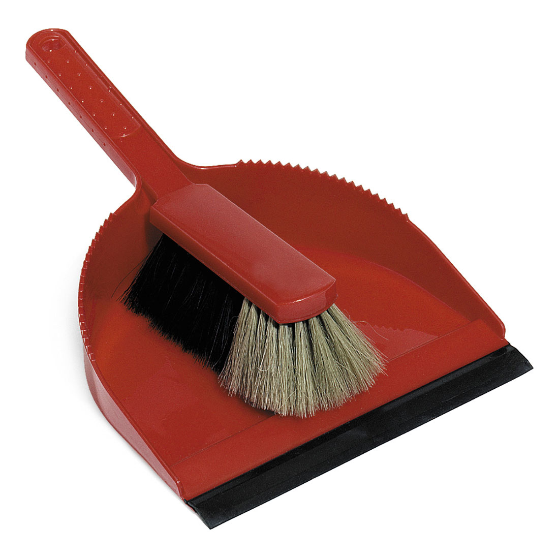 Die Kehrgarnitur besteht aus einer Kehrschaufel mit Lippe und einem Handfeger mit Kunststoffbart.