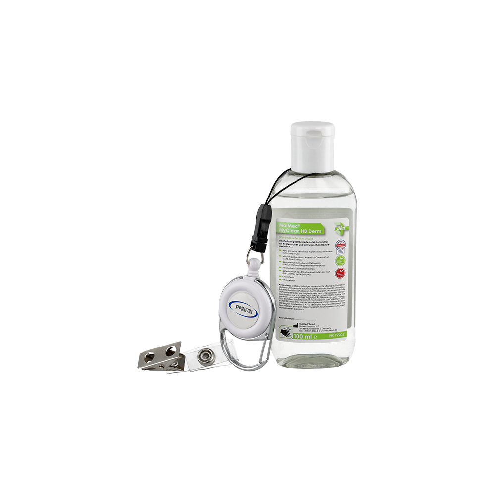 Der MaiMed® Kittelflaschenhalter ist die ideale Lösung für ständigen Zugriff auf das Händedesinfektionsmittel, direkt am Körper getragen und stets verfügbar. Er eignet sich für 50 ml- und 100 ml-Kittelflaschen und sorgt so für maximale Flexibilität im klinischen Alltag, in der Pflege oder im Hygienebereich.