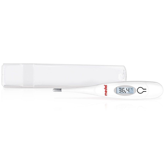 Produkteigenschaften: Digitales Express-Fieberthermometer zur Messung der Körpertemperatur in 10 Sekunden mit Signalton bei Messende, Speicherplatz, Abschaltautomatik und extra großem Display. Wasserdicht, desinfektionsfähig, quecksilberfrei.
