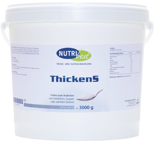 NUTRIbest ThickenS ist ein Pulver zum Andicken von warmen und kalten Flüssigkeiten und weichen Speisen.