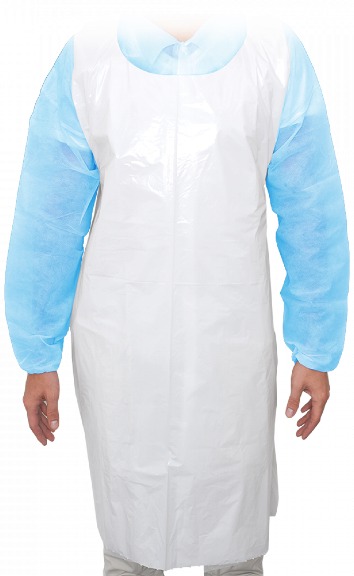 Schürze Apron Light PE aus Polyethylen zum Schutz der Kleidung vor Verschmutzungen im Medizin-, Lebensmittel- und Industriebereich. Verschlussbänder an Taille und Rücken, Mehrfachgebrauch möglich, feuchtigkeitsabweisend, strapazierfähig, geblockt und perforiert. Ausführung: light, Größe: 75 x 120 cm, weiß.