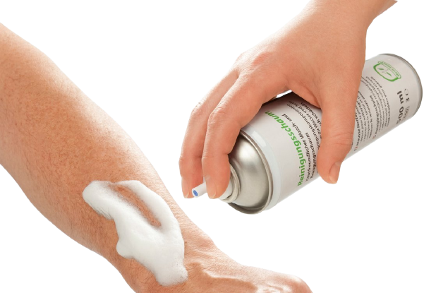 gebrauchsfertiges Schaumpräparat zur schonenden Reinigung und Pflege bei besonders stark beanspruchter Haut, ohne die Anwendung von Wasser, Seife oder Waschlotion.