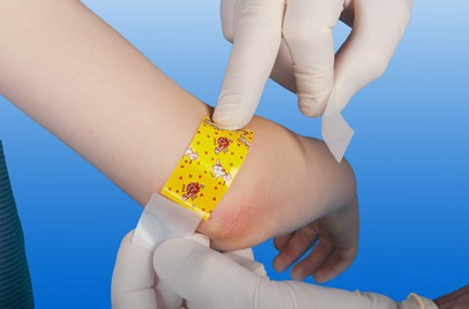 Wasserfester, flexibler Wundschnellverband mit Kindermotiven aus Kunststoff mit hautfreundlicher Polyacrylatkleber-Beschichtung für primär heilende, kleine Wunden.