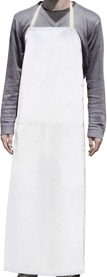 Produkteigenschaften: Schutz-Schürze aus PVC mit Bändern und Ösen, Maße: ca. 80 x 130 cm, weiß.
