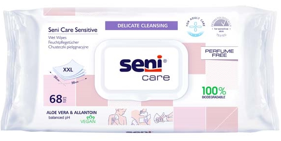 Feuchttücher mit entzündungshemmender Wirkung zur sanften Reinigung sehr sensibler und zu Allergien neigender Haut. Schutz der Hautflora durch ein natürliches Präbiotikum und Geruchsneutralisation dank einer Substanz natürlichen Ursprungs. Größe: 20 x 30 cm.