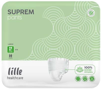 Einwegslip für Patienten mit mittlerer Inkontinenz, 100% atmungsaktiv, Geruchskontrolle, geräuscharmes Material, latexfrei, hypoallergen, 4-Linien Nässeindikator, Verschlussstreifen: platziert auf der Rückseite des Produktes (zur Entsorgung), Saugkern anatomisch geformt, Saugleistung gemäß ISO: 1.750 ml, 3 von 4 Tropfen, Hüftumfang: 100 - 135 cm, Farbcode: grün.